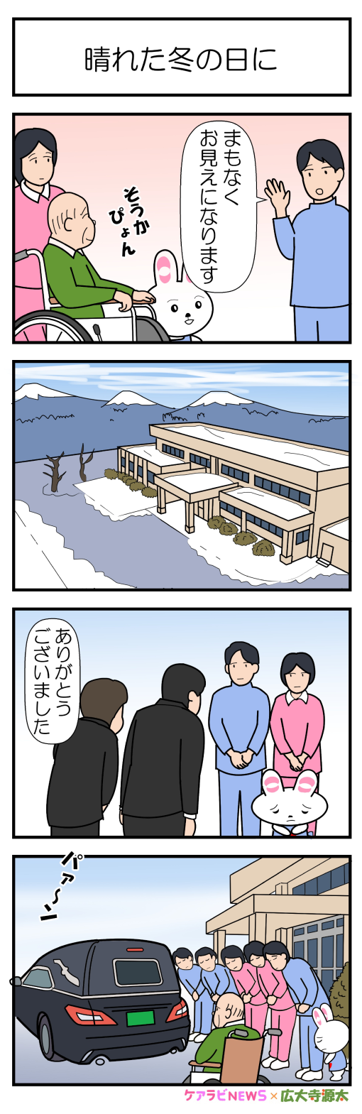 介護あるある 【4コマ漫画】81-晴れた冬の日に~新人介護職員物語~ 次回もお楽しみに! ▼4コマ漫画一覧はこちら!介護あるある4コマ漫画×広大寺源太先生コラボ【全話まとめ】2019.3.1この度、ケアラビNEWSが介護歌留多(カルタ)の広大寺源太とコラボレーションを実施することになりました。 広大寺源太は以前オススメブログでも紹介しました、 独特のユーモア、絶妙な脱力感で4コマ漫画、介...