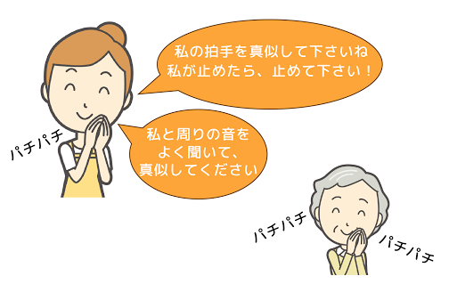掛け声に合わせ皆で拍手のタイミングを揃えることで、連帯感が生まれます。