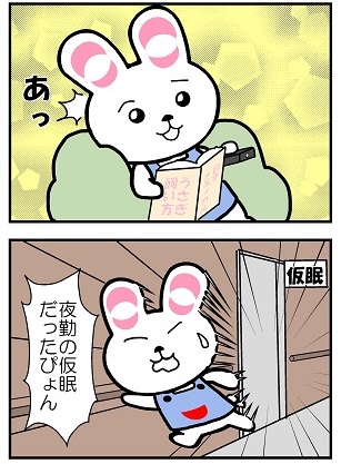介護あるある 【4コマ漫画】11-心地よい目覚め~新人介護職員物語~ 介護業界の夜勤の休憩事情に関してはこちらをご覧ください。【介護施設の夜勤】休憩時間はどのくらい?仮眠室はある?など疑問を調査2019.3.28介護施設で勤務を始める前に一番気になるのが夜勤の実態という人も多いのではないでしょうか。休憩はそもそもとれるのか、どのくらいの時間か、仮眠室があるのかなど、さまざまな実態を聞きたいはずです。そこで今回... ▼次の「夜勤での失敗」はこちら!【4コマ漫画】12-夜勤での失敗~新人介護職員物語~2019.4.17漫画一覧はこちら... ▼4コマ漫画一覧はこちら!介護あるある4コマ漫画×広大寺源太先生コラボ【全話まとめ】2019.3.1この度、ケアラビNEWSが介護歌留多(カルタ)の広大寺源太とコラボレーションを実施することになりました。 広大寺源太は以前オススメブログでも紹介しました、 独特のユーモア、絶妙な脱力感で4コマ漫画、介...