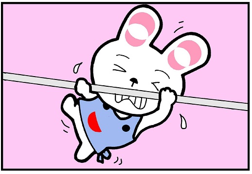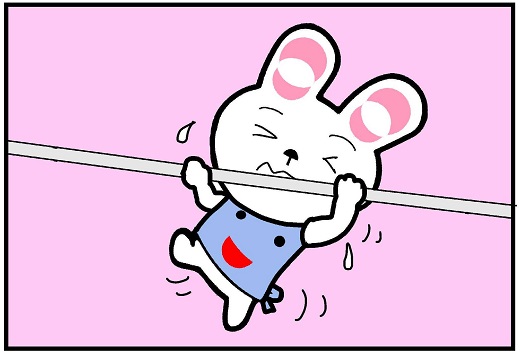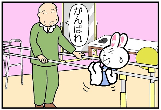 リハビリの先生がいない間に、平行棒で逆上がりに挑戦するケアビット...!